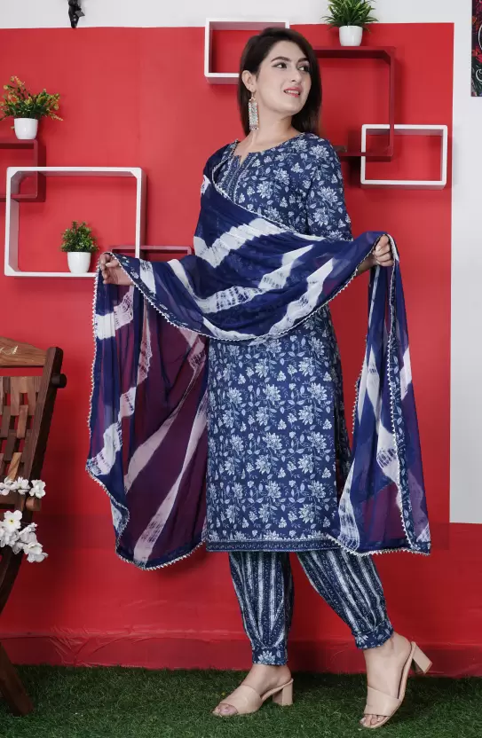 Women’s Cotton Printed Kurta Pant and Dupatta Set