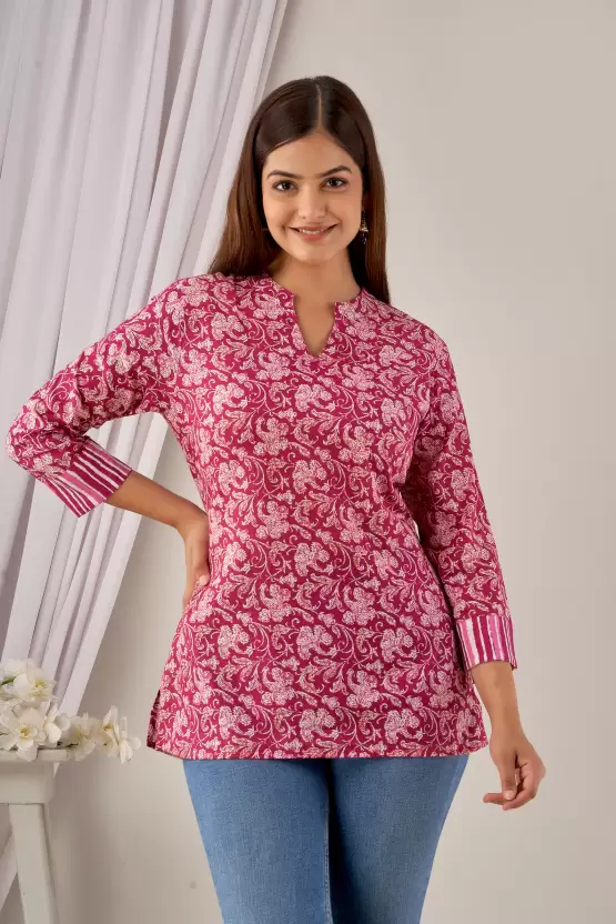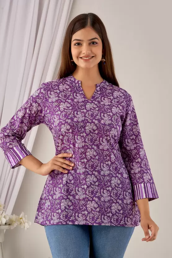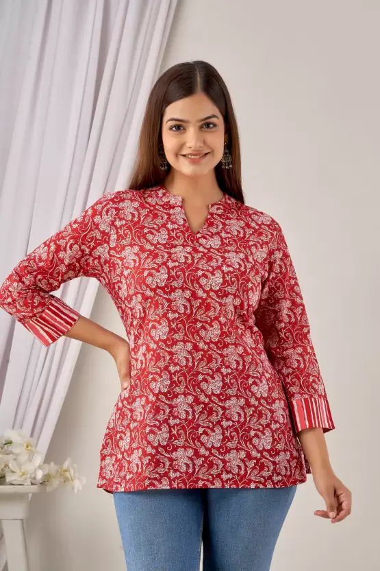 A lightweight cotton top for women, showcasing playful prints that blend comfort and style, perfect for casual outings or layering.